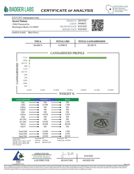 Black Cherries is an indica powerhouse that melts away tension with deep relaxation and subtle euphoria. Its rich black cherry aroma, infused with floral hints and earthy depth, crafts a luxurious experience rooted in its elite lineage. Ideal for evening unwinding or stress relief, this organic strain embodies the velvety essence of its LCG, Purple Fig, and Sherb ancestors with serene potency and indulgent allure.